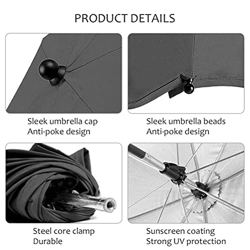 Het opvouwbare ontwerp met afneembare klem maakt het mogelijk om de paraplu gemakkelijk af te halen; de arm die flexibel in elke richting kan worden aangepast is eenvoudig te installeren.