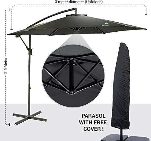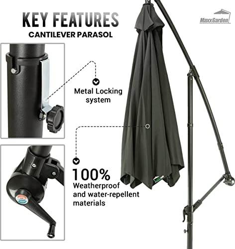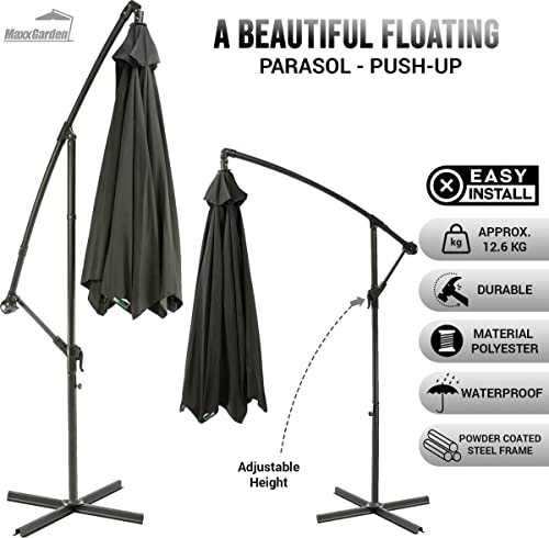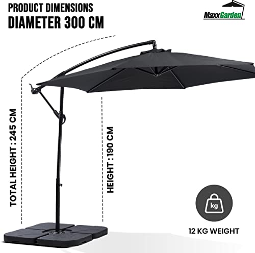 Specificaties: MaxxGarden – Parasol (diameter 300 cm) met extra kruisbasis, in hoogte verstelbare parasol, balkon met uv-bescherming…