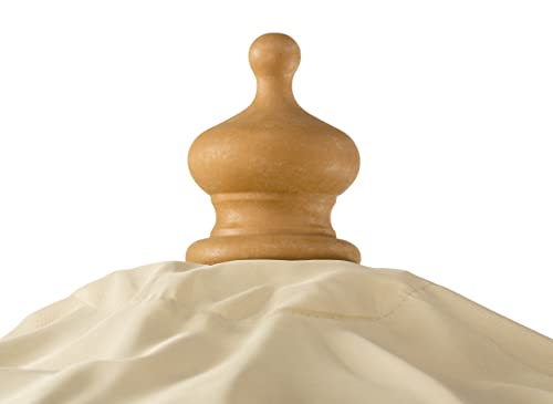 Alle kunststof onderdelen in houtlook; bespanning zonder volant, met air-vent, bestand tegen verrotting, waterafstotend geïmpregneerd.