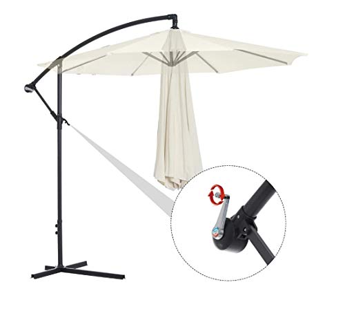 ☀️ IN HOOGTE VERSTELBAAR – De kantelhoek van de parasol is traploos verstelbaar, waardoor onze hangparasol ideaal is voor gebruik in de tuin, op het terras & op het balkon. Het sterke en robuuste frame biedt nog meer stabiliteit.