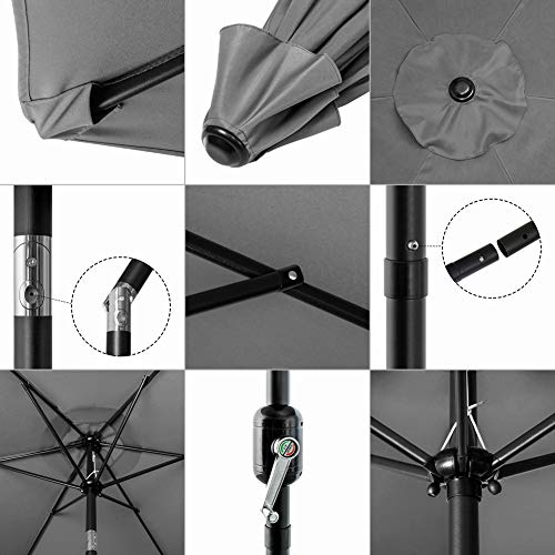 Uitstekende stabiliteit: de parasolstandaard bestaat uit gepoedercoat staal, dat niet roest en vervaagt. De schermafdekking wordt door 8 stalen ribben gedragen. De stalen buis die de parasol draagt, is 38 mm dik. Het bestaat uit twee aan elkaar geschroefde onderdelen. Verhoog het gewicht om de stabiliteit voor gebruik te verbeteren.